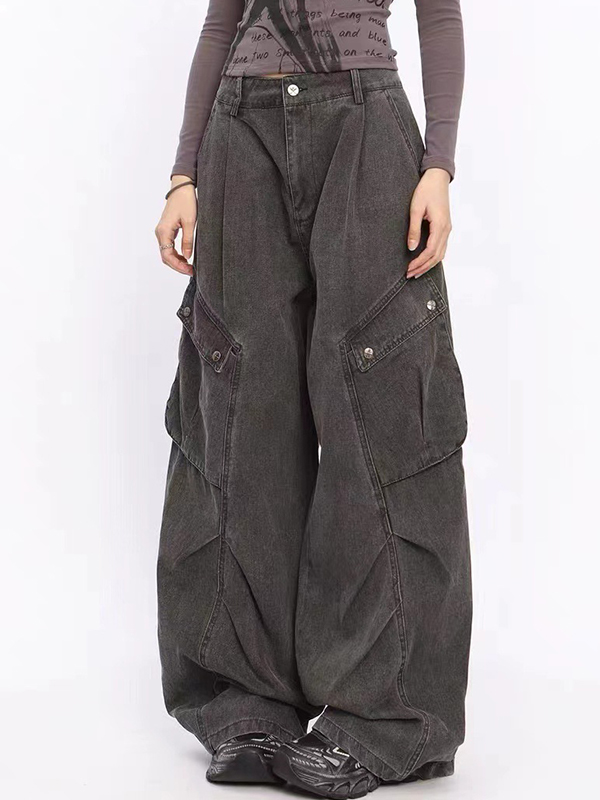 Flame Hot Diamond Printing Vintage Blue Wide Leg Boyfriend Jeans