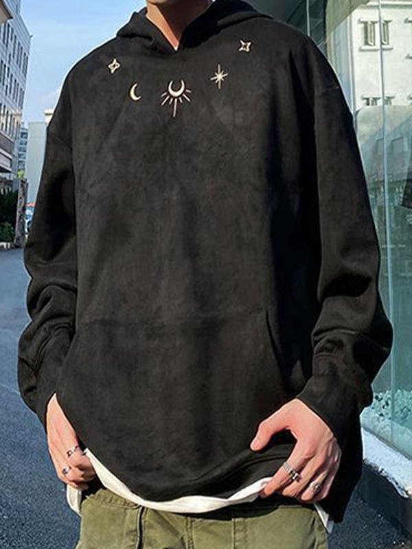 Men’s Suede Moon Star Embroidery Oversized Hoodie