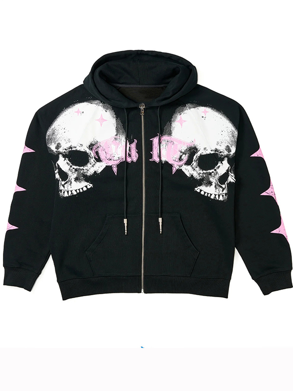 Street Blurred Skull Print Zip Up Oversized Hoodie
