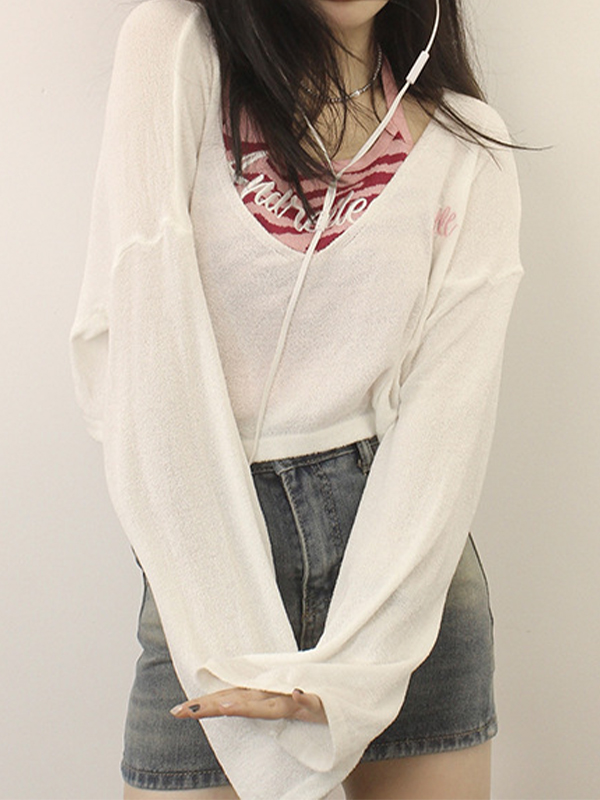 Hollow Out Crochet Long Sleeve Knit Top