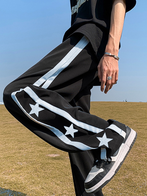 Star Print Highly Elastic High Rise Drawstring Flare Leg Pants