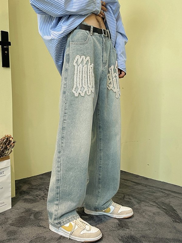 Men’s Fuzzy Letter Straight Leg Jeans