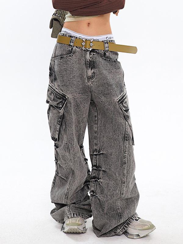 Acid Washed Baggy Cargo Jeans