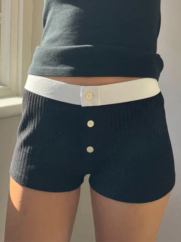 Breasted Low Rise Ribbed Knit Shorts