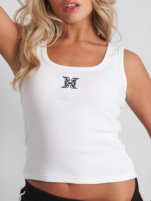 Embroidery ribbed tank tops