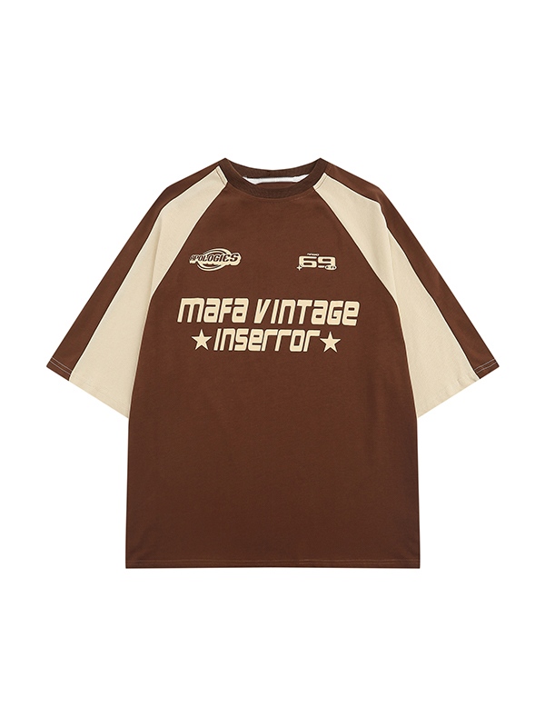 Men’s Color Block Letter Print Raglan Short Sleeve Tee