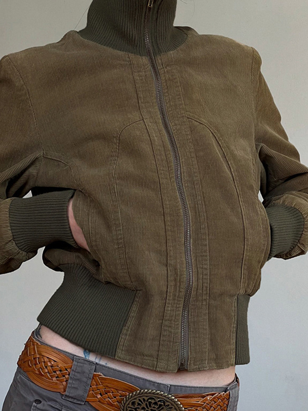American Retro Solid Color Pocket Waist Jacket