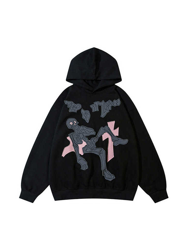 Street Cartoon Skull Print Oversized Hoodie