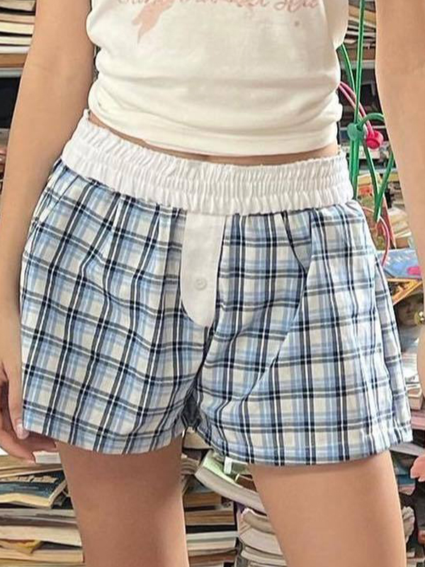 Vintage Plaid Print Shorts