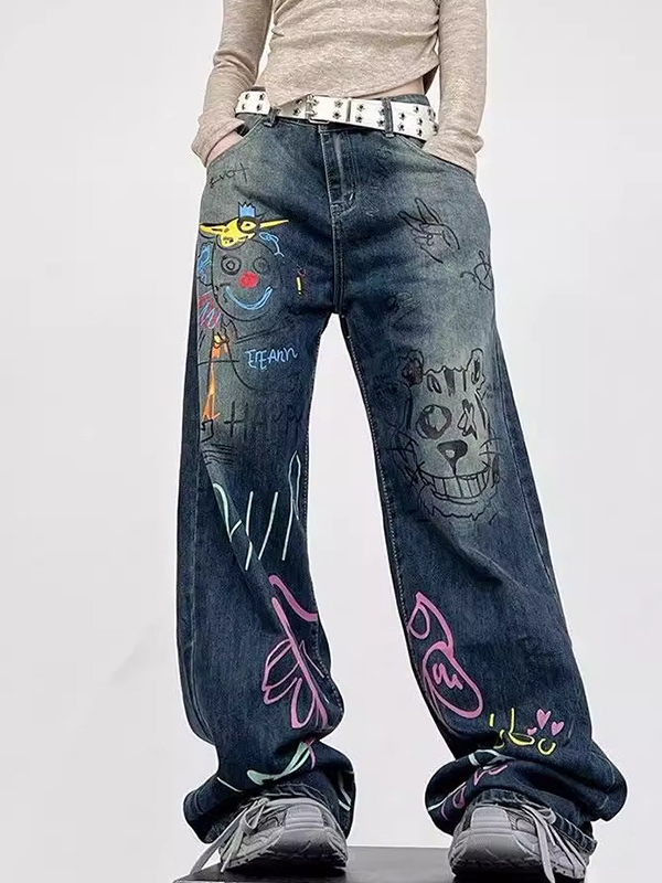 American Retro High Street Graffiti Boyfriend Jeans