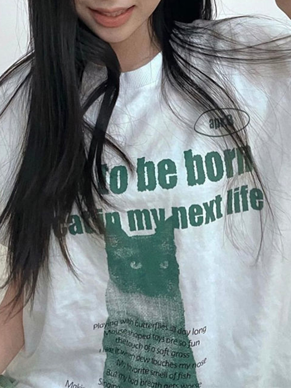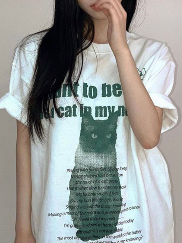 Bought this cat letter print tee for casual wear. Soft cotton, loose fit, and cute vintage design. Comfortable all day and perfect for cat lovers!