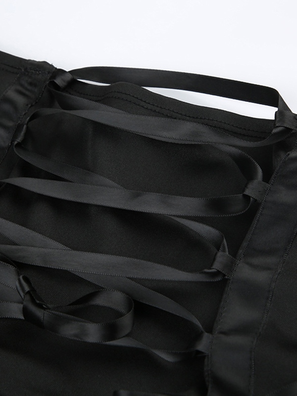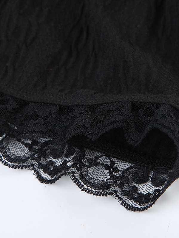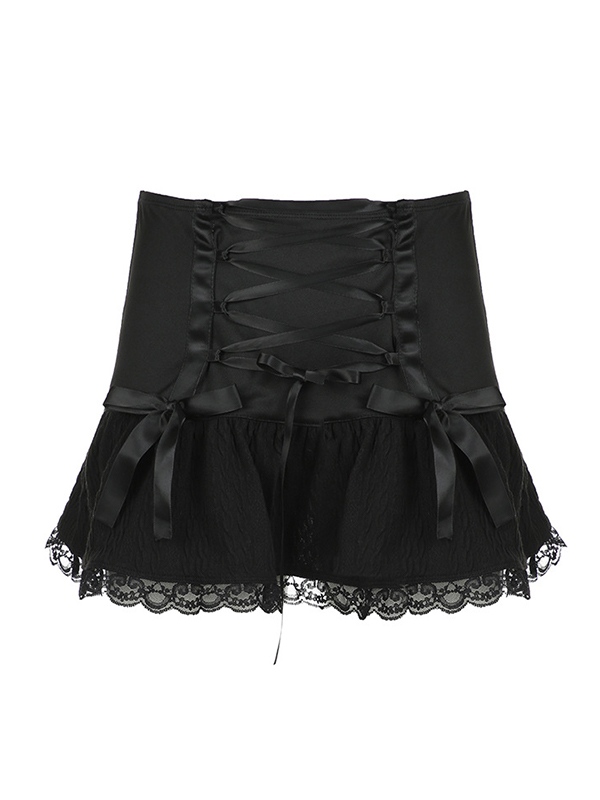 Be the first to review “Lace Splice Crossover Tie Up Pleated Mini Skirt”