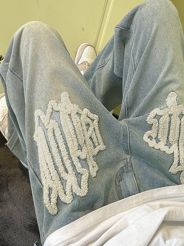 Description: It has fuzzy letter motif on the front leg, features multi pockets design, and with a metal zip button detailing.