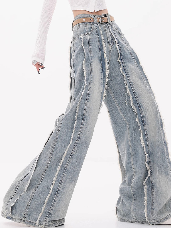 Raw Edge Design With Wide Legs Flare Jeans