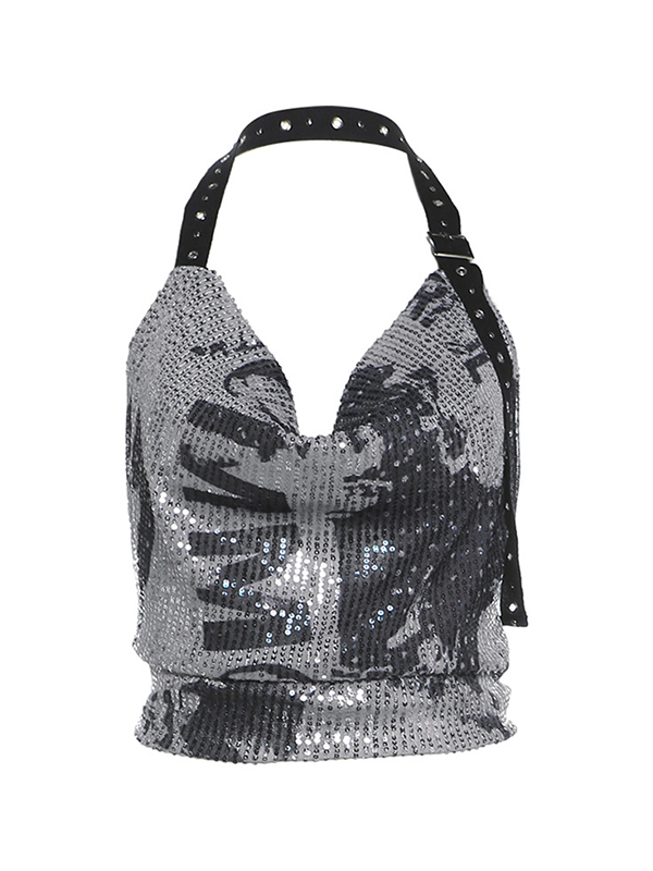 Unique Design: The halter vest features a sequin design, making it a standout piece in any wardrobe. The eyelet detailing adds a punk flair while the backless design adds a sexy touch.