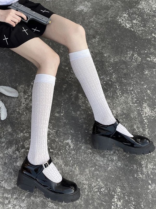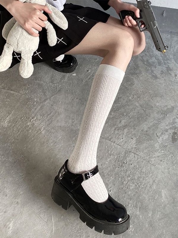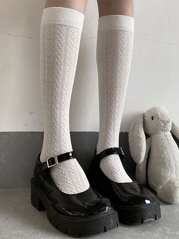 Be the first to review “Solid Color Jacquard Knee High Socks”