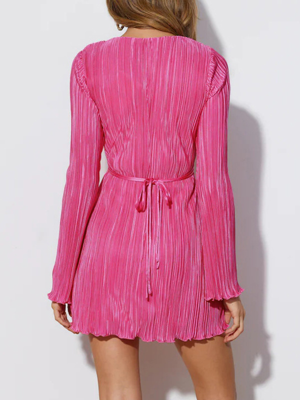Solid Tie Back Trumpet Sleeve Mini Dress