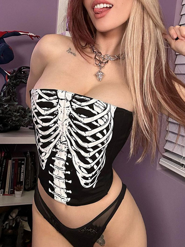 Personalized Hot Girl Versatile Skeleton Print Bandeau Top