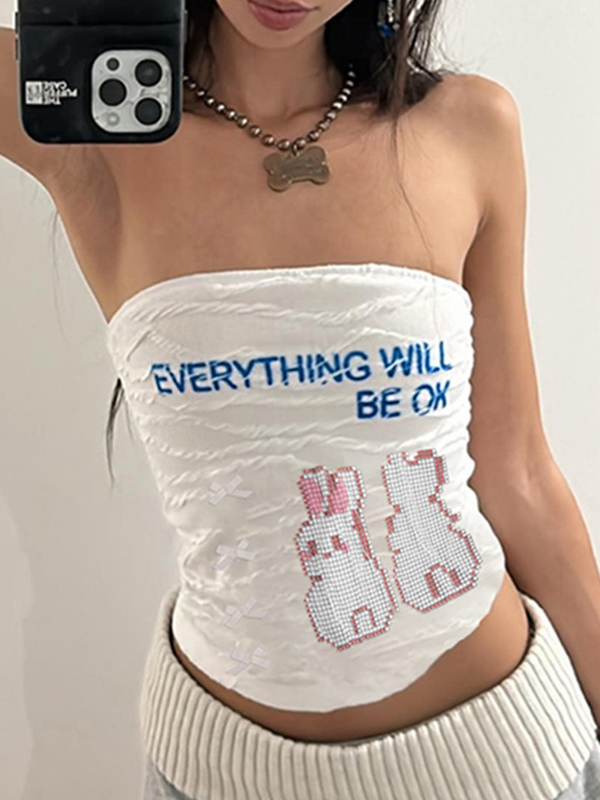 Letter Rhinestone Print Bandeau Top