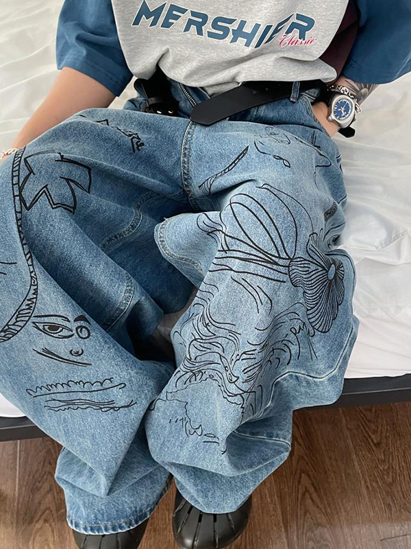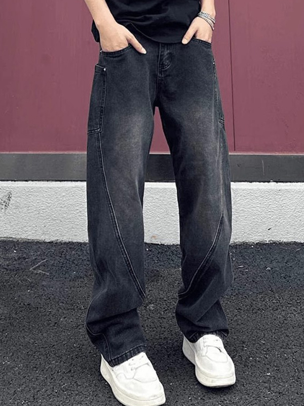 Men’s Vintage Wash Zipper Decor Loose Jeans