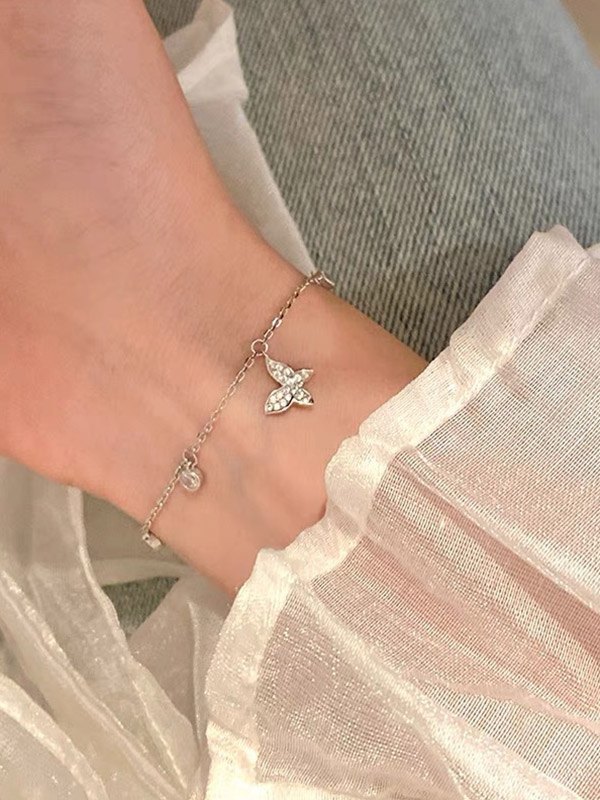 Rhinestone Butterfly Charm Bracelet
