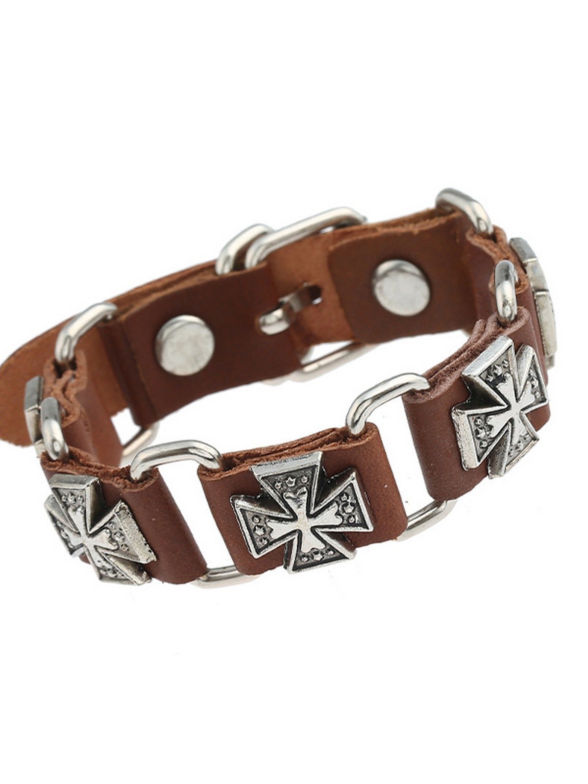 Men’s Cross Pattern Pu Leather Link Bracelet