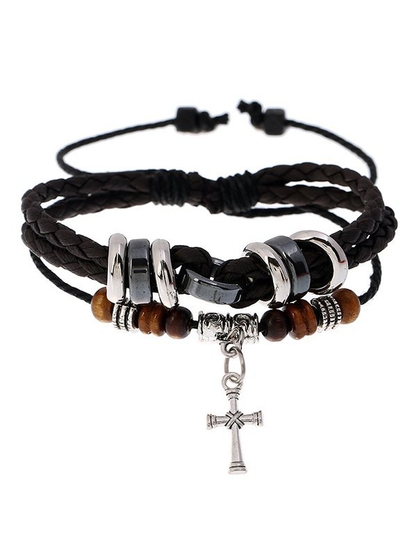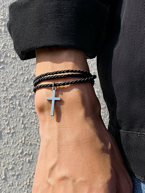 Men’s Cross Pendant Layered Rope Bracelet