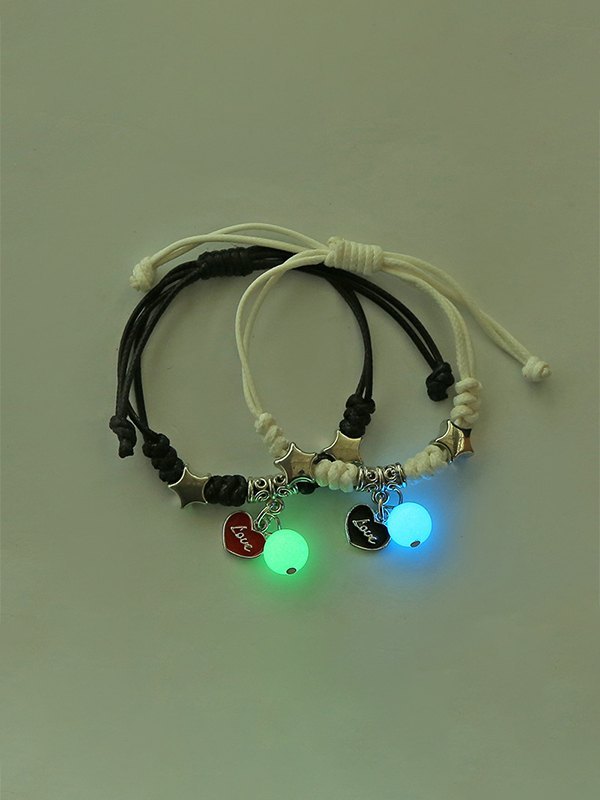 1pair Luminous Bead Braided Rope Bracelet