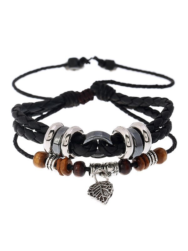 Adjustable Layered Beads Pu Leather Bracelet