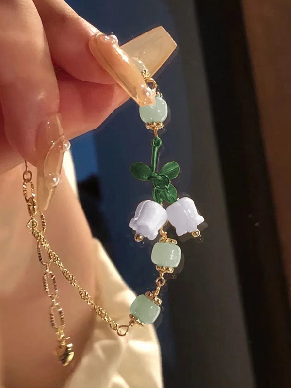 Adjustable Faux Jade Flower Pendant Link Bracelet