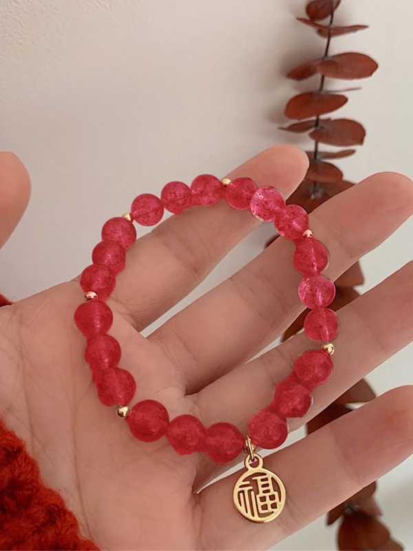 Pink Crystal Chinese Pendant Bracelet