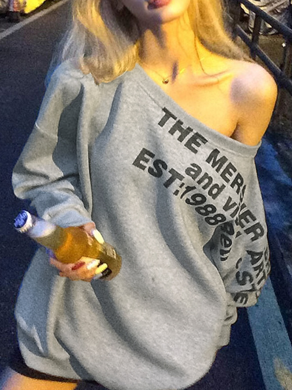Long Sleeves With Slanted Shoulder Lettering Design Sweatshirts