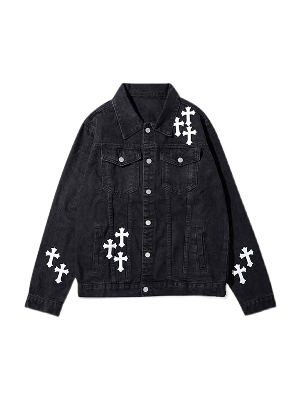 Men’s Vintage Cross Print Denim Jacket
