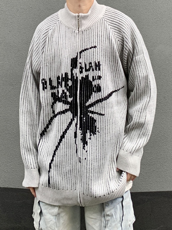 Men’s Spider Print Collar Neck Zip Up Knit Outwear