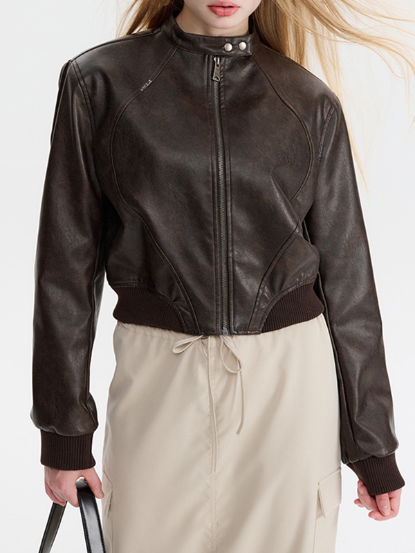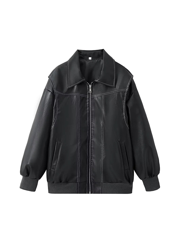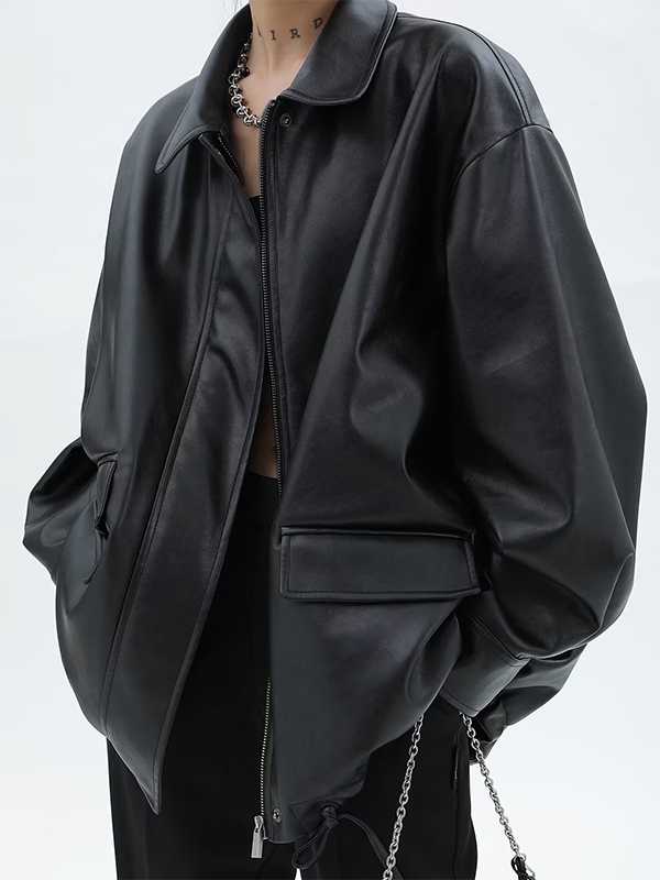 Loose long sleeve vintage leather jacket