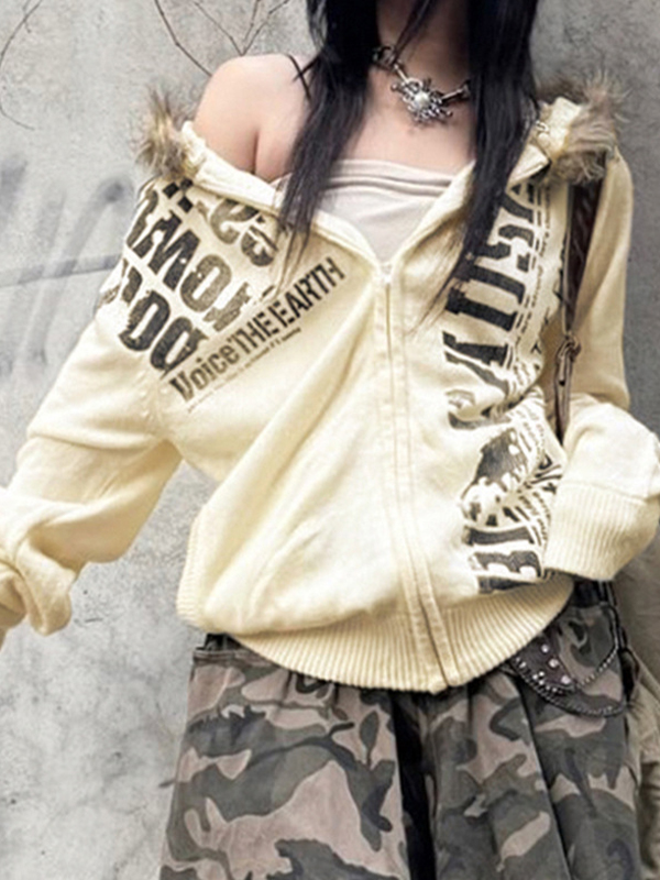 Contrast Color Letter Print Zip Up Cropped Jacket