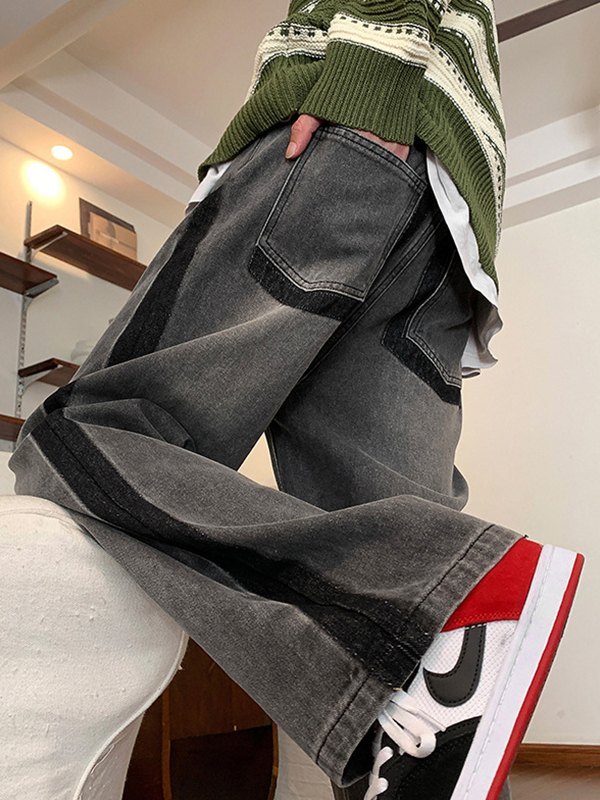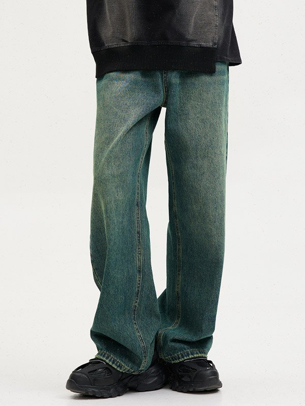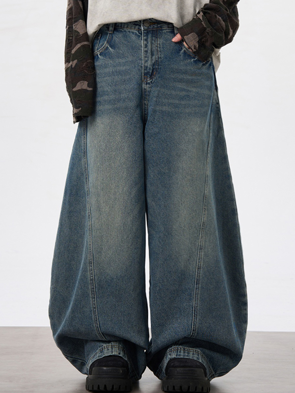 Men’s Vintage Wash Ruched Loose Jeans