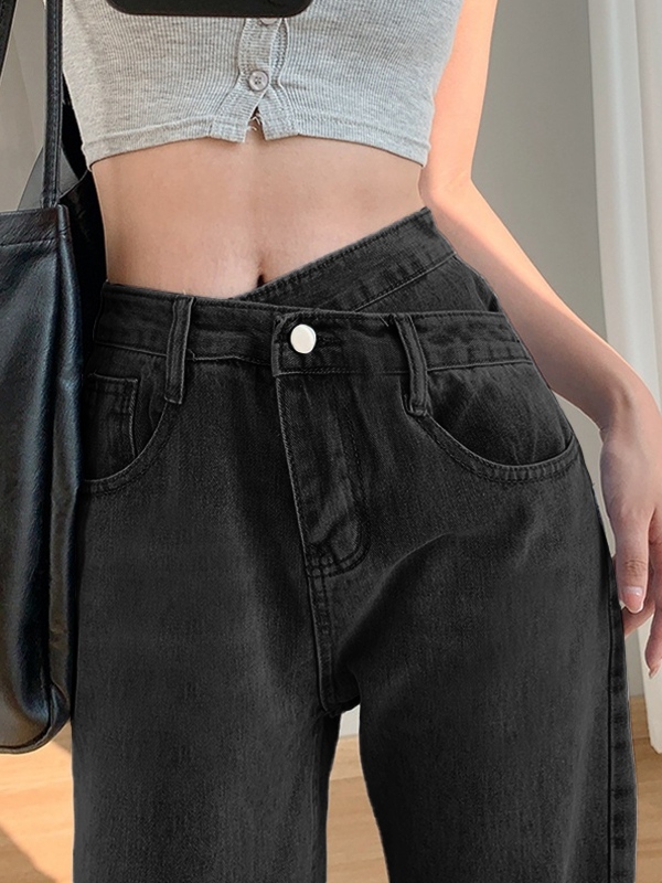 Irregular Design High Rise Boyfriend Jeans
