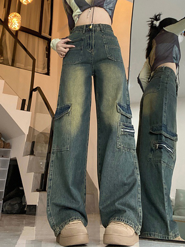 Washed Multi Pocket Cargo Jeans