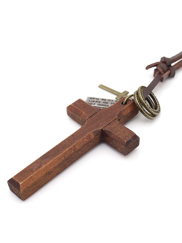 Wooden Cross Pendant Leather Necklace