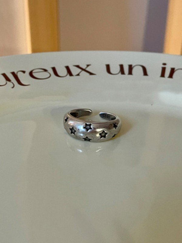 Vintage Star Pattern Cuff Ring