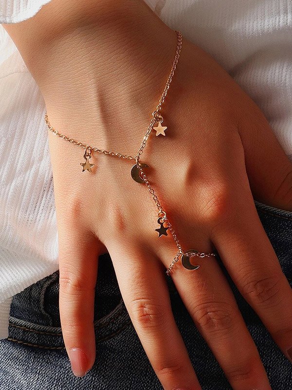 Star Moon Finger Ring Chain Slave Bracelet