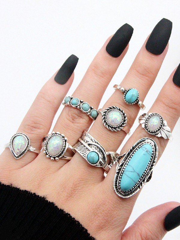 8pcs Vintage Stone Pendant Ring Set