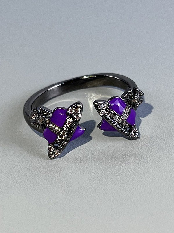 Rhinestone Cosmos Planet Charm Cuff Ring