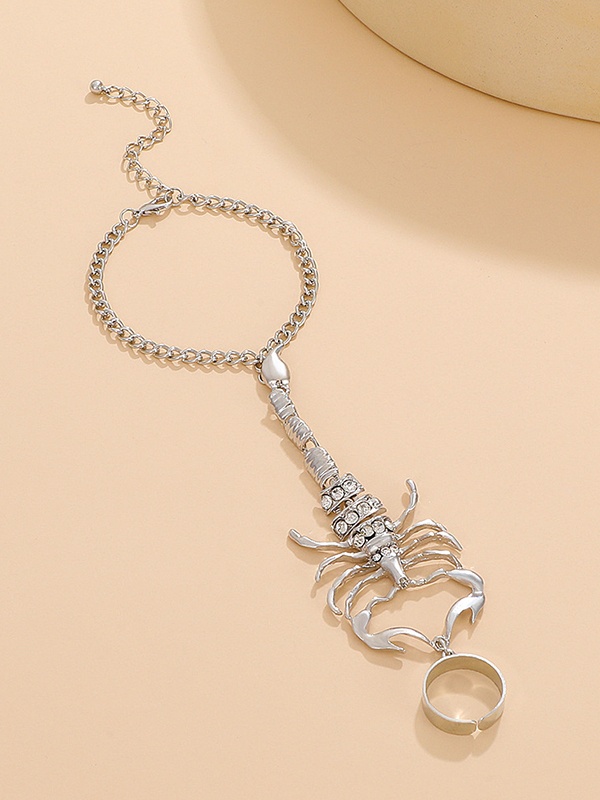 Rhinestone Scorpion Bracelet Finger Ring