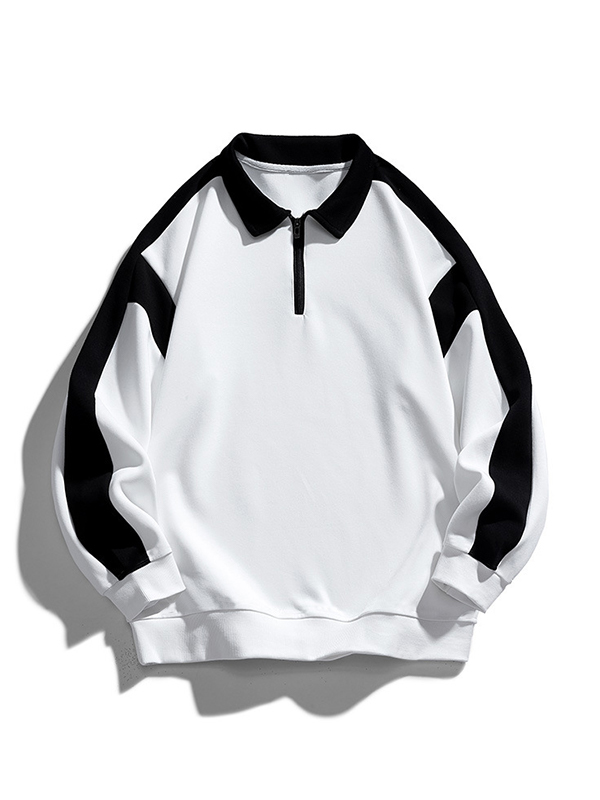 Men’s Contrast Color Lapel Neck Half Zip Sweatshirt