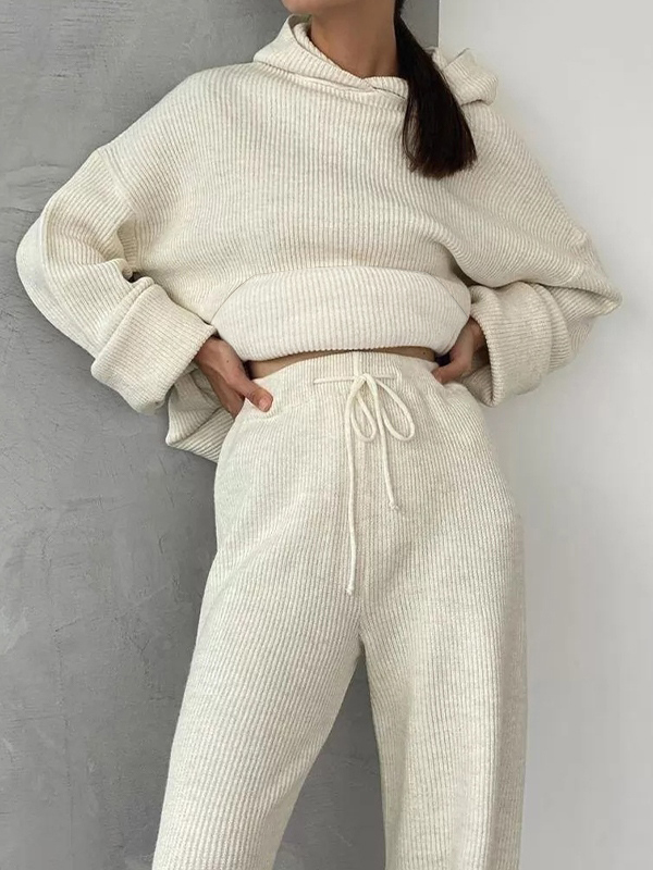 Solid Oversized Hoodie&Drawstring Wide Leg Pants Set