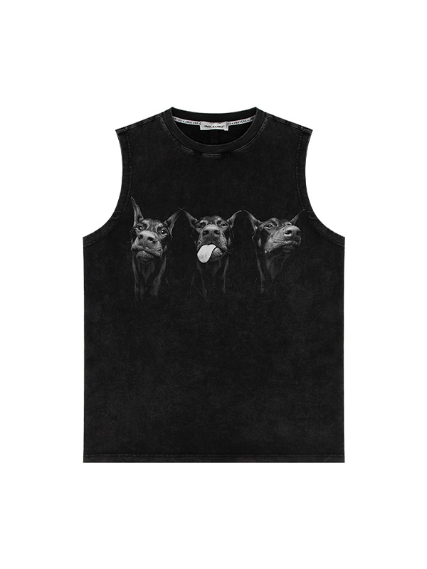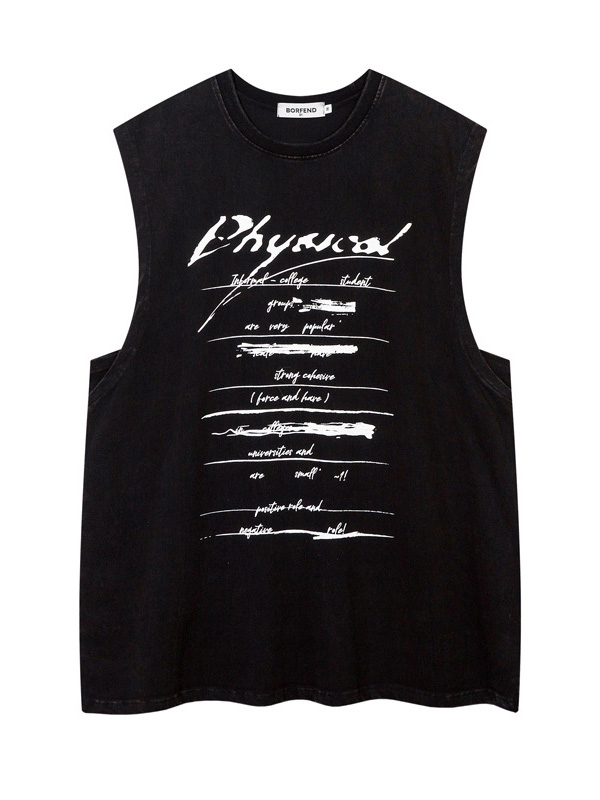 Men’s Vintage Washed Distressed Letter Print Vest