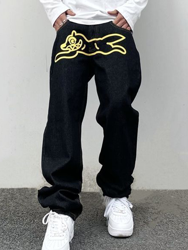 Men’s Flying Dog Print Straight Leg Jeans