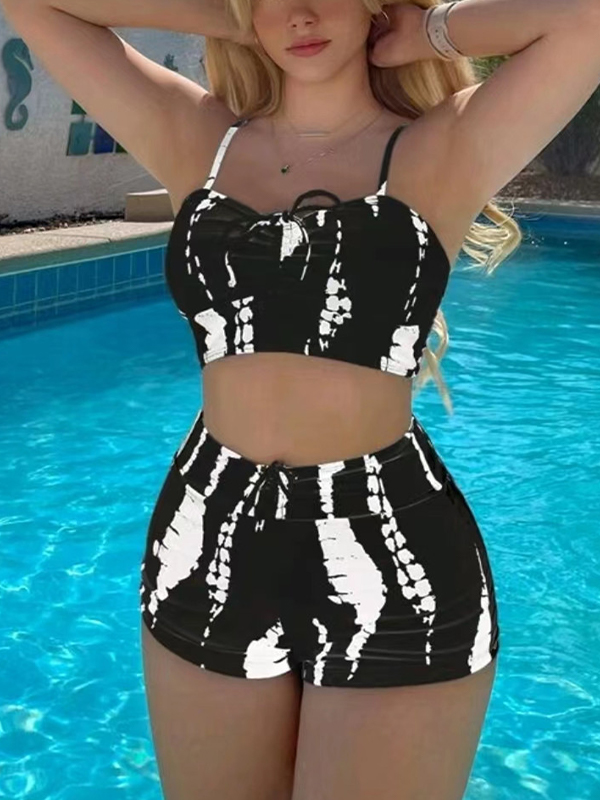 Hot Girl Beach Lace-Up Striped Suspender Belt Mini Dresses